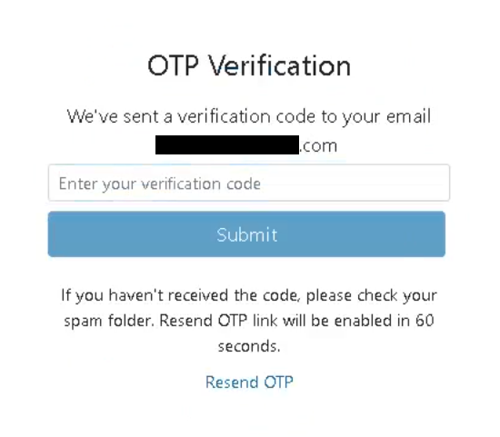 3. Enter the verification code on the OTP Verification screen.