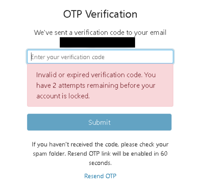 Note: If you enter the wrong code, you will receive a warning with the number of attempts you have left before your account is locked.